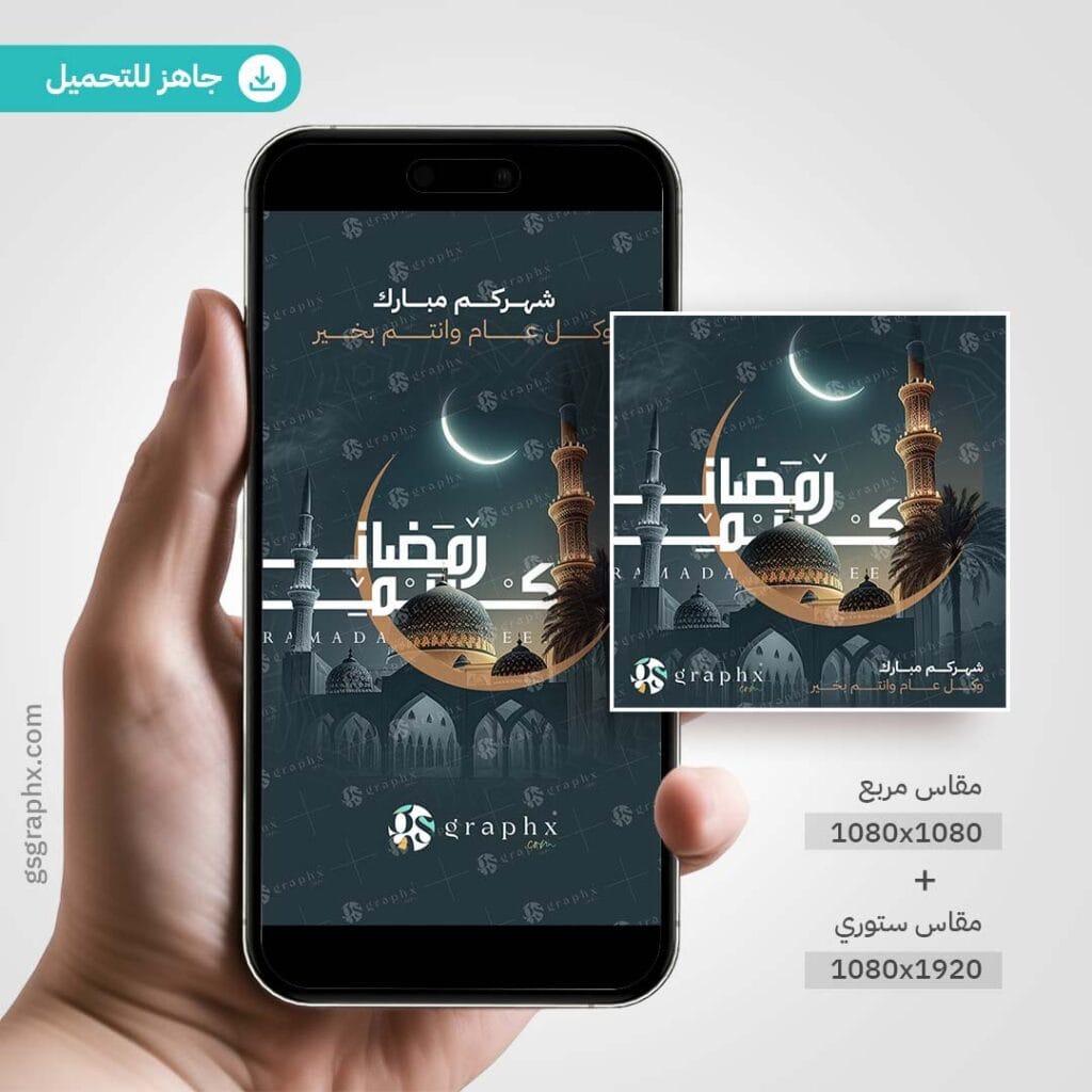 تصميم تهنئة شهررمضان، جاهز ومميز، وبسعر مخفض، بمقاسين، يمكنك تحميله مباشرة بدون الاسم والشعار.